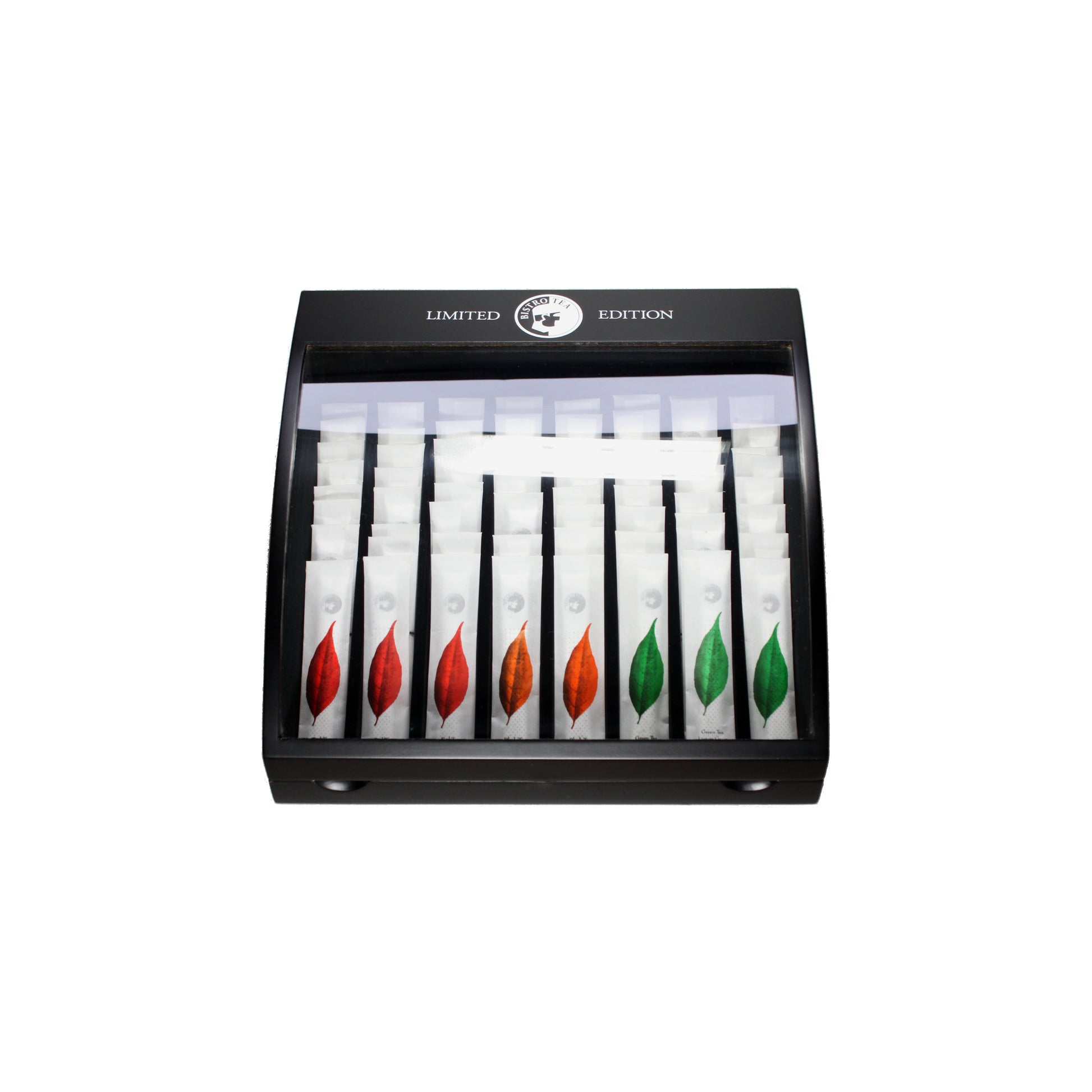 Genießen Sie Luxus und Stil mit der Bistrotea® T-Bar Grand Collection. Verwandeln Sie Ihre Teeauswahl in ein Erlebnis mit 64 Teeportionen, präsentiert in einem eleganten Teedisplay. Perfekt für höchsten Stylefaktor und ein geschmackvolles Genusserlebnis.
